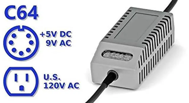 High-quality Commodore 64 replacement power supply unit (PSU). Designed specifically for C64 and VIC-20 systems to preserve them in a pristine condition for years to come. Stabilized and filtered +5V/ 2.0A DC along with 9V/ 1.1A AC ensure continued error-free operation of your C64. Replacement power supply for Commodore 64 and VIC-20 Stabilized 5V/ 2.0A DC output with anti-ripple filter Transformer-generated 9V/ 1.1A AC output Over-voltage and over-current protection Fused on AC and DC side and fully isolated LED-illuminated high quality chassis Durable and thick cables on both sides Runs cold Weight only 0.6 kg ( 1.3 lb) Compact enclosure with modern shape 125 mm x 59 mm x 42 mm ( 5.0" x 2.3" x 1.6" )
