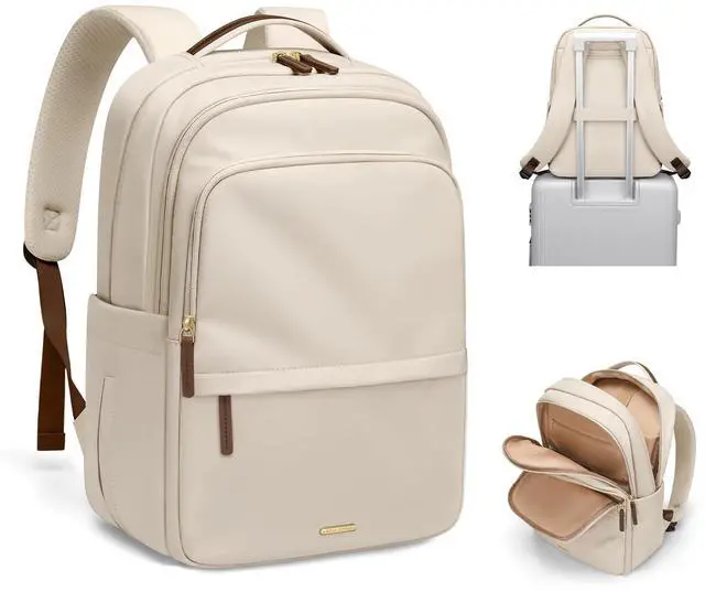 ^^ PERFECT LAPTOP FIT & SAFETY - Dedicated laptop compartment securely fits laptops up to 15.6 inches, offering excellent padding and a snug fit to protect your device from bumps and scratches during daily commutes or travel. ^^ COMFORTABLE TO CARRY Designed with your comfort in mind, this backpack features adjustable dual padded shoulder straps to suit different body types while reducing shoulder stress, a sturdy top handle, and a back luggage strap. Whether you're carrying it on your back or holding it by hand, you'll experience an optimal and comfortable carrying experience, even during extended use.
