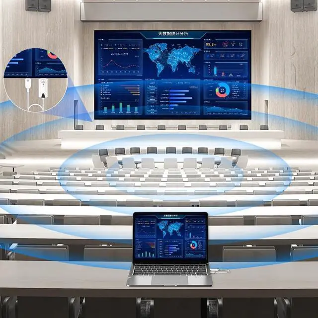 Wireless HDMI Transmitter and ReceiverThis wireless hdmi transmitter and receiver transmits 1080P high-definition video to large-screen devices. It uses WIFI transmission technology, which is very suitable for business meetings, family gatherings and game entertainment. ^^ [Plug & Play] This wireless hdmi kit does not require Bluetooth connection, no need to download drivers, no need to connect to WiFi, plug & play, ultra-high-speed transmission efficiency can reach 5.8G frequency, only need to connect the HDMI interface and USB power supply interface to use, solve the problem of HDMI connection and wiring, thereby improving work efficiency.