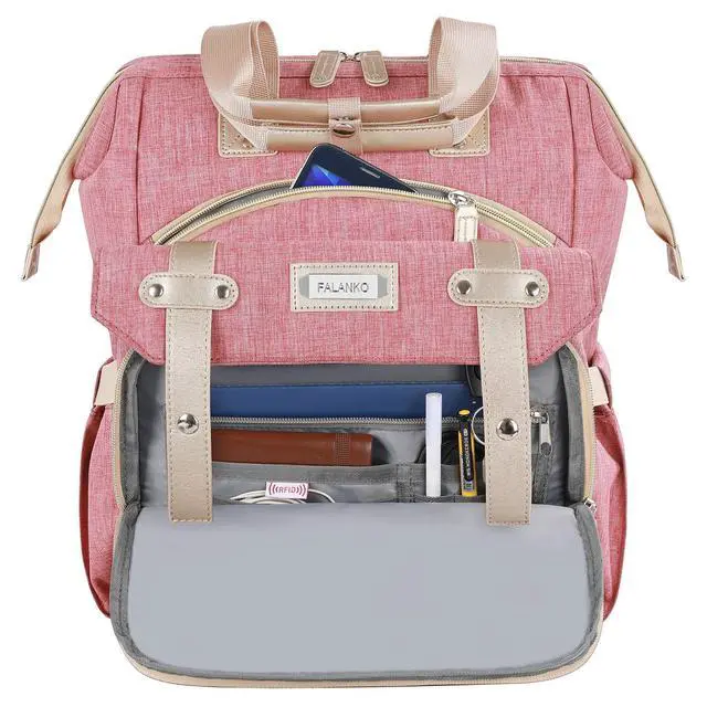 WIDE OPEN DESIGN: Tote backpack for women can easy access doctor bag-style opening, This travel laptop backpack has a rectangular frame to keep the mount large, providing visible and easy access to the items at the bottom. No more digging. It can be wide-open 7.8" width. Reinforced edges and steel frame of the main compartment keep the perfect shape of the bag and durable. ^^ USB PORT DESIGNThe travel Backpack with built in USB charger cable design and power bank pocket inside, great convenience for charging your electronic devices via connecting your own power bank. It offers an easy access to charge your phone when you are carrying a backpack on the road (POWER BANK is not included) ^^