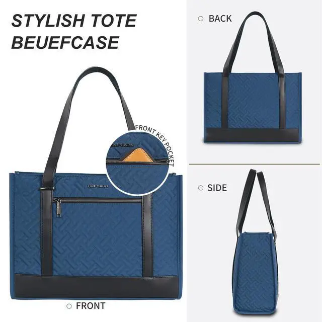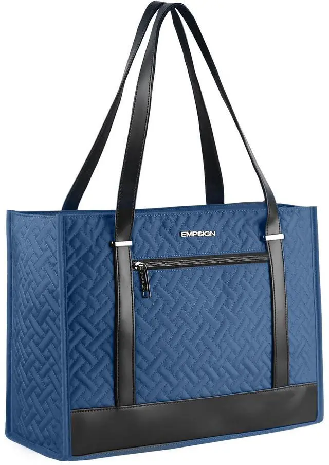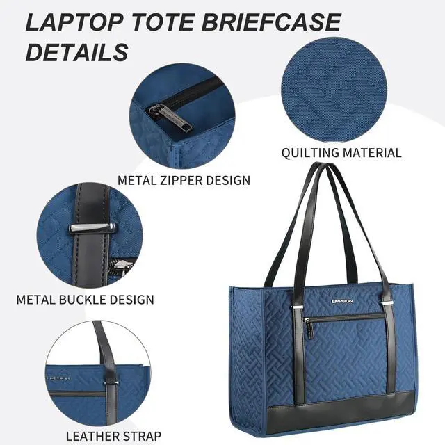 Durable & Stylish women tote bag: Empsign laptop bag made of high-quality quilted canvas and Durable leather, offers water-repellent and Wear resistance advantage, The exterior of the Tote bag adopts quilting technology, combined with metal locks, to convey a classic and fashionable appearance and feel, Stable bottom for better load-bearing backpack.