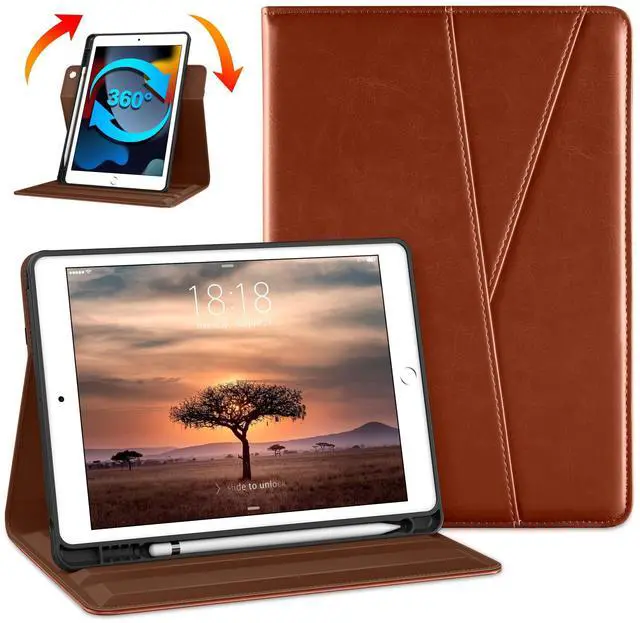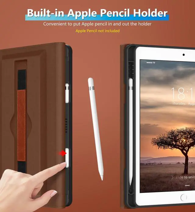 Please Note: Apple pencil not included ^^ Exterior is made of premium synthetic leather, lined with microfiber provide full protection perfectly protects the iPad 9th Gen from scratches ^^ Auto Sleep/Wake features, automatically wakes up the device or turns it off. Features dual front pockets document card pocket to keep notes, cash, and cards