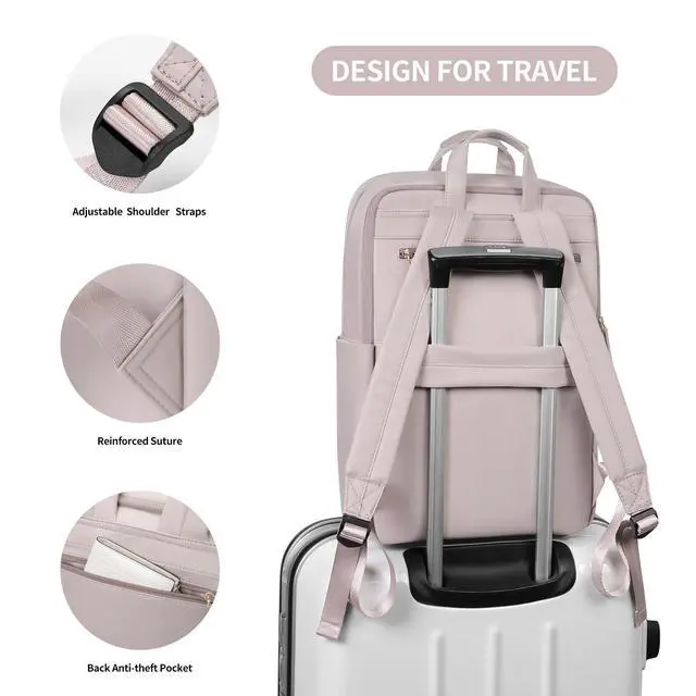 Features and Safety: Luggage straps allow the backpack to be attached to a suitcase/suitcase and slide over the luggage upright handle tube for easy carrying. Internal shock-absorbing foam secures your laptop and iPad, preventing them from sliding and bumping. Breathable and adjustable shoulder straps relieve the stress on the shoulder ^^ Fashion and