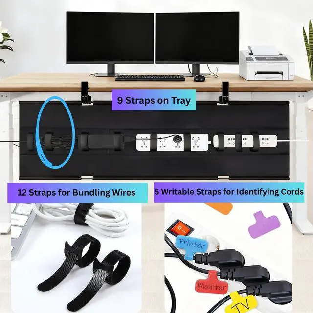 EXPERT-APPROVED CABLE HIDEAWAY Engineered for a clutter-free, professional workspace. Meeting high standards for a perfect home office storage, this out-of-sight office desk organizer works for remote workers, designers, creators, students in dorm, streamers and gamers seeking a perfectly ordered environment. ^^ EXTRA LARGE 48-INCH CAPACITY FOR MAXIMUM DESK ORGANIZATION Manage complex setups with this extra-long tray. It holds large power strips, surge protectors, bulky adapters, and all computer cords wire management for dual monitors, PCs, and gaming rigs. Perfect Christmas New Year gift to yourself, family and friends.