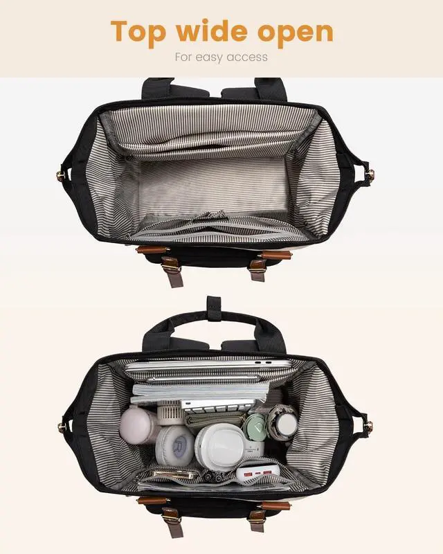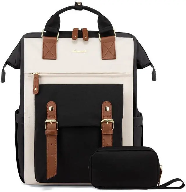 LOVEVOOK 17 Inch Laptop Backpack for Women Work Travel Backpacks Purse, Nurse Bag Teacher Business Laptop Computer Bag, Fashion College Backpack Casual Daypack, Black-Beige-Brown