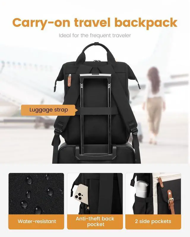Your Getaway: This travel backpack with trolley strap can liberate your shoulders. The side pockets are stretchy to fit thicker water bottles. With a hidden Anti-theft Pocket, you don't have to worry about thieves patronizing your backpack. ^^ Laptop Backpack with