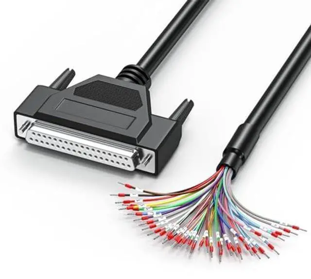Bare Wire Design: Features a DB37 Female adapter with bare wires, each terminated with red copper cold crimping terminalsfirmly crimped to prevent loosening, ensuring secure connections for wiring setups.