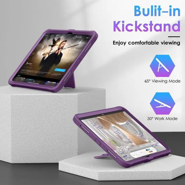 Note: NOT compatible with other iPad models ^^ Functional KickstandWith built-in foldable kickstand, the case provides multiple angles to watching. Allows easy access to your favorite shows, movies and games while on the go ^^ Dual Layer DesignThis protective shell backer combines with a high-quality shock-proof TPU layer and a hard PC backplate, effectively reducing the impact caused by collisions and preventing the iPad from being scratched ^^ Precise CutoutsPrecise cutouts design for perfect access to all ports, buttons and functions without removing the case. Equipped with dust plug to prevent charging port from being blocked by foreign matter ^^ Built-in Screen ProtectorMade of PC material, combined with the plating process to make the protective film and iPad screen more closely without bubbles, effectively prevent the screen from being scratched, easy to clean, and without compromising sensitivity