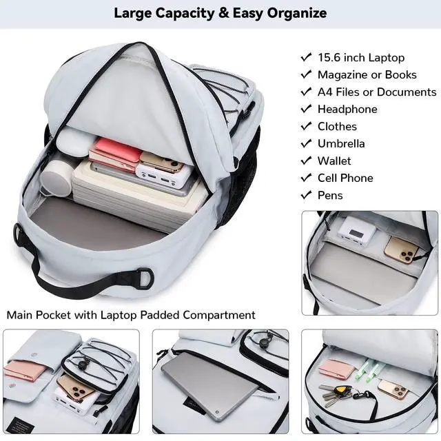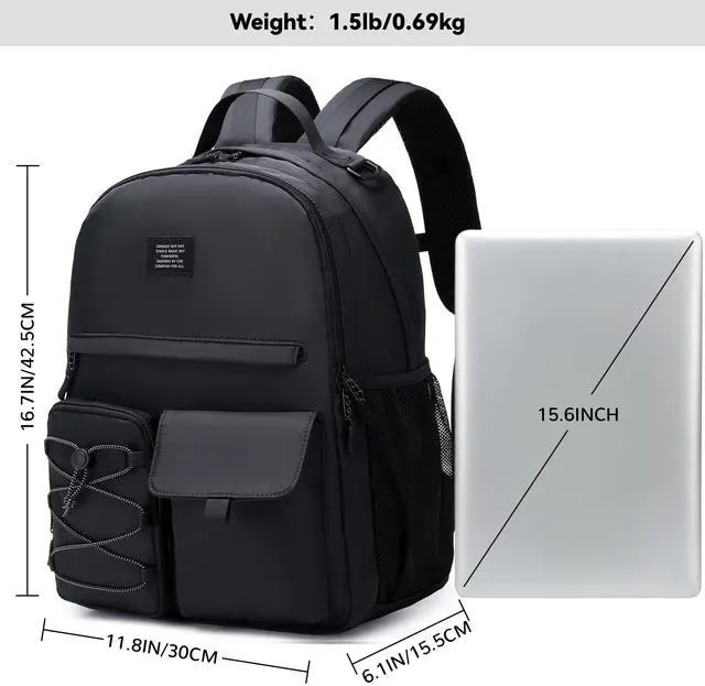 Size: 11.86. 116.7 inches, it is large enough to carry everything you need. The main room contain padded compartment can hold textbook, tablet, chargers, books, clothes and other necessities. ^^ [Multi Pockets] - The front pocket allows you to put your small items in an organized manner. Backside Anti-theif pocket can keep your phone or other valuable items safe. Side pockets for water bottle or umbrella. Large middle sub pocket for magazines, A4 documents, etc. ^^ [Comfortable] The shoulder starp is adjustable, you can adjust the lenth that suits yourselves, and the additional CHEST STRAP can help to prevent straps from slipping. ^^ [Multi Usage] - The casul daypack is unisex and suitable for various activities, including work, travel, outdoor and shopping, etc. It's a perfect gift idea for men, women teen girls boys. THIS ITEM IS NOT INTENDED FOR USE BY CHILDREN AGED 12 AND UNDER.