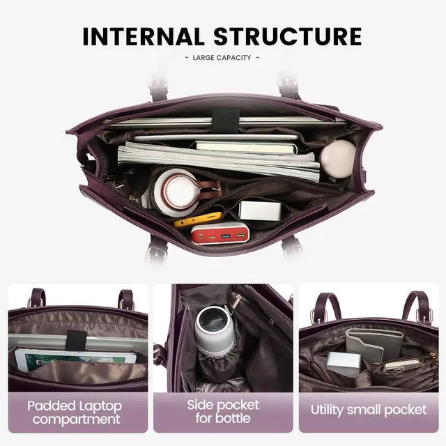 Design Work Bag: Connect your power bank with built-in USB male port, and connect your own USB cable to the phone for charging at any time (power bank not included). The front pocket with widely opening design for you to access small office items easily. Laptop compartment with foam padding and fixed velcro to protect your laptop from damage.