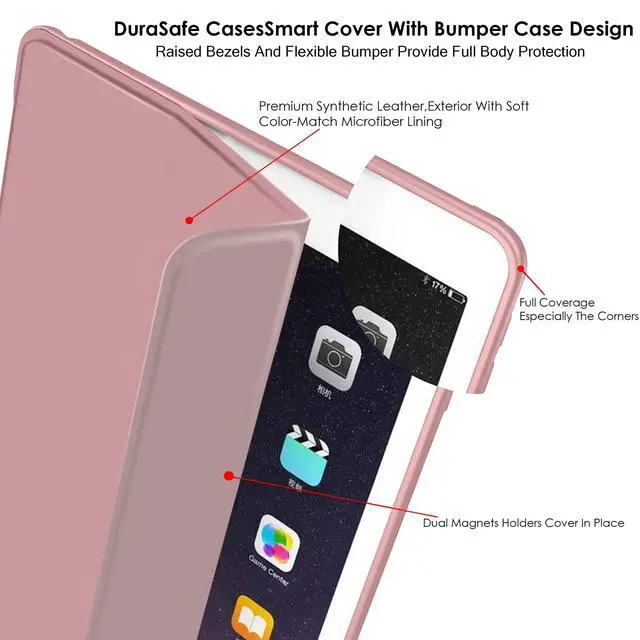 High Quality Lightweight Material & Excellent design makes this case feel very Stylish & Premium & Fully Protects your device against Shock, Abrasion, Scratch, Fingerprint, Slips, Dirt & Corner Damages. ^^ Dual-Angle Viewing/Typing Built-in Dual Angle Viewing/Typing Stand makes it much more comfortable for Typing, watching videos, surfing web & reading while keeping both your Hands Free & avoids any Joint Pain. Allows unobstructed gesture swipes & enhances the beauty of your iPad due to its exclusive Bezel-Free design. Built-in Magnet also helps to hold your iPad steady while using the Dual-Angle Stand feature & prevents your iPad from falling.