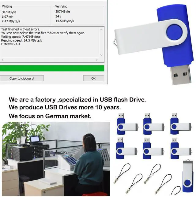 Write speed: 7MB/s, with a SLC flash chip, passed H2 software test. So, we can do 1 year of the warranty. ^^ Bulk USB flash drives 512MB, plug then starts to transfer. Operating temperature range of 512MB thumb drive 100 Pack and cute flash drive 512MB. ^^ Bulk flash drives 512MB USB drives 100 Pack and USB drive 512MB bulk are between -8 and 42, with 100 pieces lanyards. The metal material is Aluminum ^^ 512MB 100 Pack pen drive 512MB USB stick 100 Pack and 512MB USB drive 100 Pack. The size is 2.28 * 0.75 * 0.39 Inches, it is easy to carry. You can use 512MB USB memory stick to copy the data files and to download the music. ^^ We are specialized in USB Flash Drive more 10 years. And we focus on German market on B2B. We can do customized logo for you.