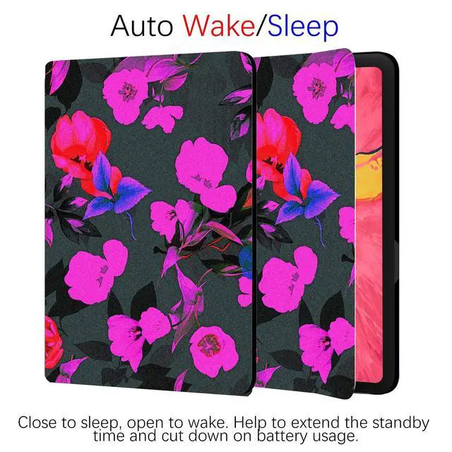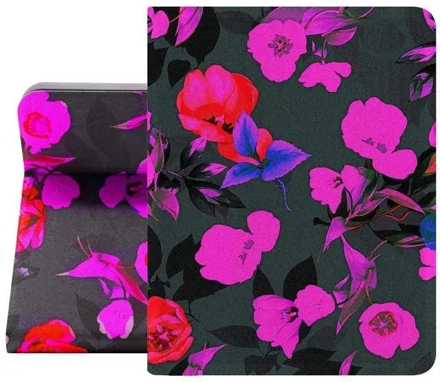 Berkin Arts Compatible with iPad 7/8/9th Generation & iPad Air 3rd Generation (10.5 Inch) 2019/2020/2021 Folio Case - Premium Leather Cover Art - Neon Floral & Dark Floral Pattern