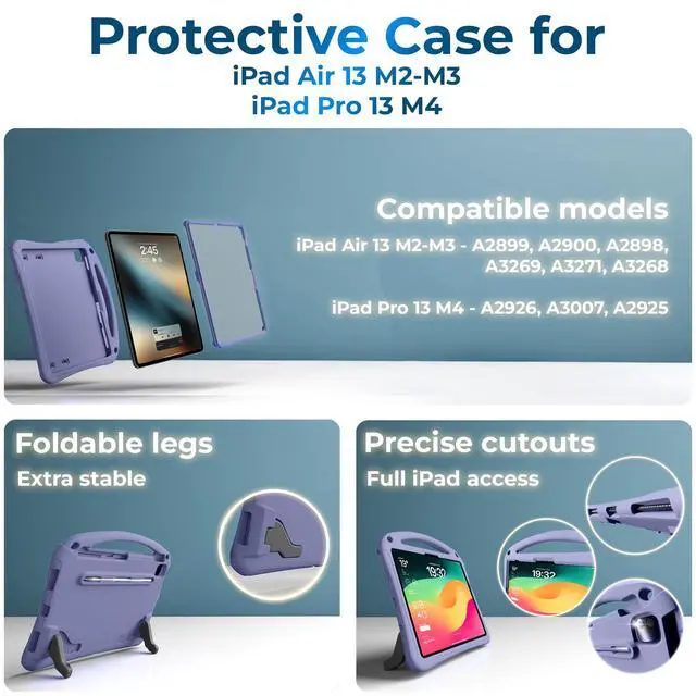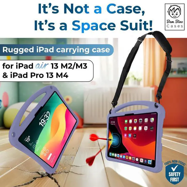Case Design: crafted for iPad Air 13 inch/iPad Pro 13 inch 2024/2025; case for kids with shock-absorbing foam, built-in screen protector against drops, screen damage; practical adjustable shoulder strap with safety release ^^ All