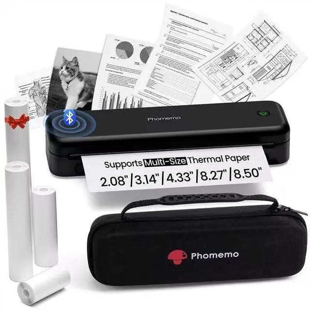 Phomemo M834 Bluetooth Thermal Printer with Carry Case & 200 Sheets US Letter Thermal Printer Paper 8.5" x 11"