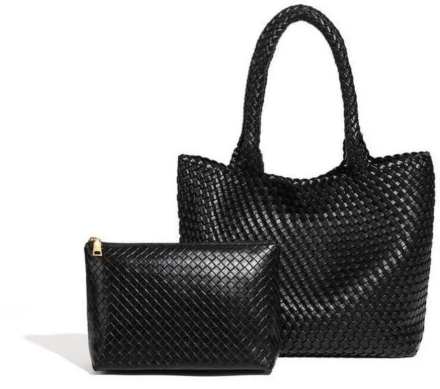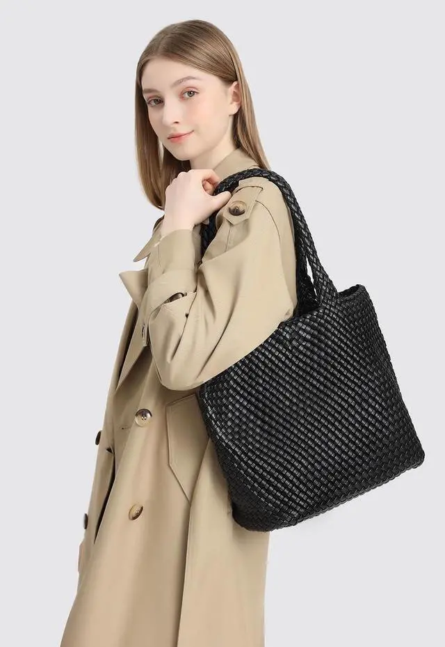 CLASSIC VEGAN LEATHER WOVEN TOTE BAG: This Womens Tote Bag was hand woven with premium vegan leather, no animals are harmed, construction with durable magnetic snap closure and soft shoulder straps for comfortable carrying, Classic color and design never go out of style ^^