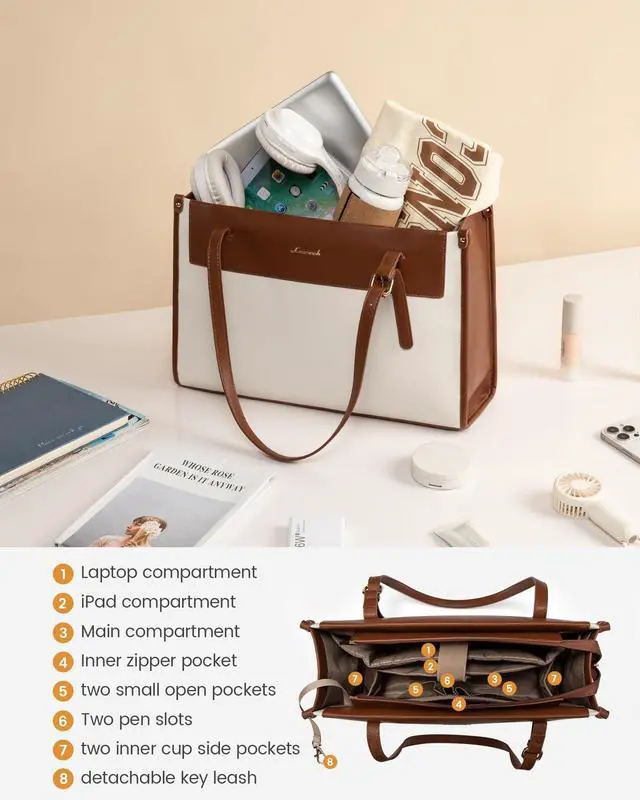 Weight: only 1.32 lbs. Each size is just right, not too big, not too small, just enough to accommodate your 15.6 inch laptop and daily office work needs items, equipped with adjustable three different height handles to meet your different needs. ^^ A Clutch Bag with Purchase The complimentary clutch bag is suitable for holding your mobile phone, lipstick, makeup mirror and small daily items, easy to quickly access, so that you can always stay camera-ready for any occasion, do not miss this exclusive gift. ^^ Multiple Color OptionsA variety of colors for you to chooseBeige&Black is sleek and simple; Black is fashionable and versatile; Brown&Beige is classic and elegant; Khaki&Beige is nature and purity. You can choose your favorite color for different occasions whether it is work, leisure or dating, you can find the right match for you.