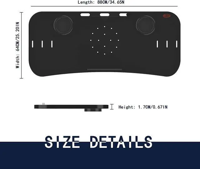 ^^ Well Constructed 22 lbs Support & Protective Guard on the edge. The workstation holds your equipment safe and secure while you walk and get your work done. The edge rubber protects your equipment from scuffs and scratches even if there is friction while you walking. Sturdy construction supports weights up to 22 lbs, please do not lean your body compeletly on the board. ^^ Better Dissipation. With special designed cooling holes provide good ventilation, helps the air flow underneath your laptop thus helping to keep it cool, preventing the risk of damage, and ensuring its longevity for long term use.