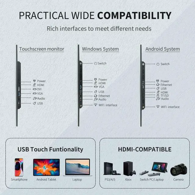 Multifunction Smart PC: can be used as a CCTV monitor for security cameras, menu screen for restaurant or used as part of a POS system. Ideal for industrial touch display, offices, retail, restaurants, bars, gyms, warehouses, etc ^^ Plug and