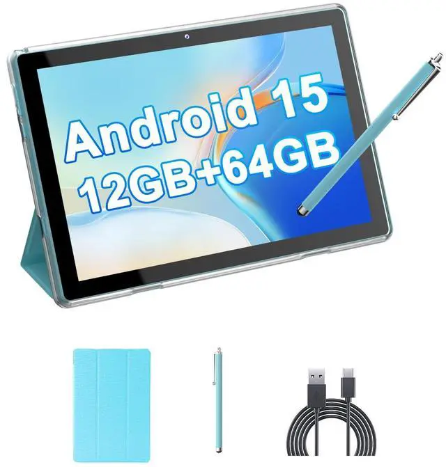 [Android 15.0 Tablet] The 10inch tablet equipped with stable Android 15.0 system, built-in 1.8GH z Quad-core CPU, 12GB (4GB+8GB Expand) RAM and 64GB ROM, with microSD card slot which can expanded up to 512GB, more app, songs, videos and pictures can be saved right on your tablet. ^^ 10Inch HD Screen Tablet The stunning 10-inch eye protection full screen has a larger visual area and a wider visual field, adopts a 1280*800 IPS HD touch screen, whether you play games, watch movies, read, take notes and work, it can bring you immersive visual enjoyment.