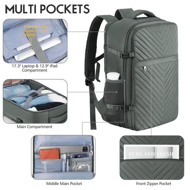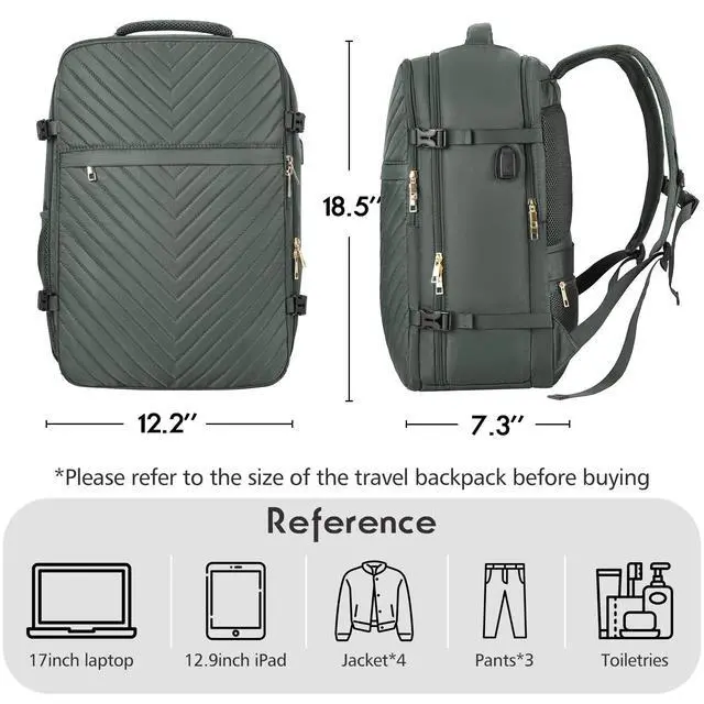 Comfy&Sturdy Women's Travel Bag: This carry-on backpack is made of waterproof and durable polyester with good ventilation and heat dissipation, with two padded shoulder straps, providing light carrying and strength enhancement, reducing the pressure on the shoulders. It's tough, sturdy and won't fade.