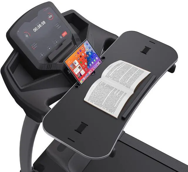 Remember: If this product visibly covers your treadmill heart rate/speed/on-off buttons, it may not be the best attachment for your treadmill. Recently there are lots of returns on this product, the feedback mostly says that the tray is too big. However, you can clearly see the product size parameters in the image and description. So please take into consideration these details before ordering ^^ This second generation treadmill desk is designed with a tablet holder and edge guard. Walk while WorkingTransform your work routine with this sturdy 36" x 15.4" x 0.78" desk for treadmill. Attach it to your treadmill and create an active workstation that allows you to multitask while you walk. The tablet holder and edge guard keep your equipment safe and secure ^^ 22 Transform your exercise routine with this sturdy and stylish walking desk. The board construction supports weights up to 22 lbs, and the 2 adjustable nylon straps and 3 slots are designed to fit most flat treadmills ^^ We have improved this treadmill desk attachment material of edge quality. The edge rubber protects your equipment from scuffs and scratches even if there is friction while you walking.