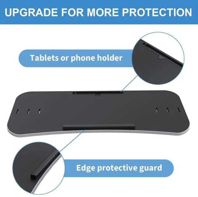 New added edge protective guard is provided to protect your laptop from falling down, completely solve your worries. The treadmill laptop stand holder is added for your tablets or phone ^^ Transform your work routine with this easy-to-assemble treadmill desk. Simply place the particle board on your treadmill, match the treadmill handle to the slot on the board, pass through the slot from bottom to top, and fix the board with 2 nylon straps as tightly as possible ^^ Some buyers fedback there's a crack on the edge. It's a complete misunderstanding. The crack is actually a small cut and it's not a product quality issue. In order to avoid the friction that will damage your treadmill when you put it on your treadmill for exercise, we purposely use this silicone material to cover around the tray. If you find that this edging strip is not glued tightly and may come off, you can glue it yourself, No effect whatsoever ^^ - We stand behind our product and are committed to your satisfaction. If you have any needs, reach out to us via support email.