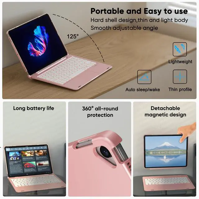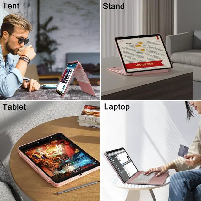 Note: Please Upgrade Your iPad Software to iPadOS 15.0 or Above to fully access the Touchpad Function. ^^ Multi-touch trackpad- Cursor and multi-touch gestures designed for iPad. Install your iPad 10.5 inch on the protective cover of the iPad keyboard case, and you can use your iPad like a laptop, providing a new navigation mode for your iPad, allowing you to easily edit documents or presentations on your iPad Manuscript page, browse the web, effectively improve work and study efficiency. ^^ Cool Backlit Keyboard with shortkeys-Features with the spacious keyboard layout, adjustable 7-color RGB LED backlight, 3 backlight brightness levels, laser-etched keys. Designed for maximizing typing experience, lit up the keys in a dark room, comfortably and accurately typing on the lighted keys with a smooth touch. Laptop-like iPad air 3rd case with keyboard comes with the iPadOS shortcuts, adjust backlight colors, brightness levels, volume control, media control, and more with a tap. ^^ 4 Use Modes-Detachable magnetic designed keyboard case for ipad 10.5 inch. The case that provides all-round protection for ipad. Allows you to freely switch between tablet mode and laptop modeIn different usage modes, you can easily use the iPad to browse the web, watch videos, edit documents, etc.