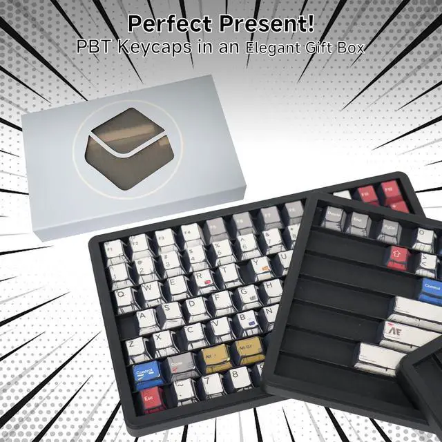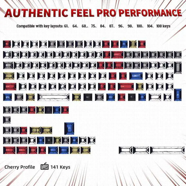 ^^ Custom Keycaps: This retro comic mechanical keyboard keycap set fit most keyboard of 61 64 68 84 87 96 98 104 108(60%/65%/75%/80%/100%) layout. These key caps are compatible with all mx switches, such as cherry mx, gateron, kailh and outemu switches ect.