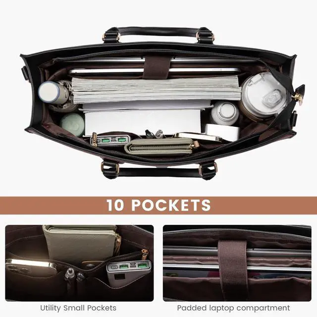 • Elegant Laptop Tote Bag for Women: The Computer Handbag Shoulder Bag interior is thoughtfully designed with multiple compartments. The laptop pursue built-in padded laptop compartment fits up to a 15.6" laptop, featuring a thick protective foam pad and a secure velcro strap to ensure optimal protection for your dev