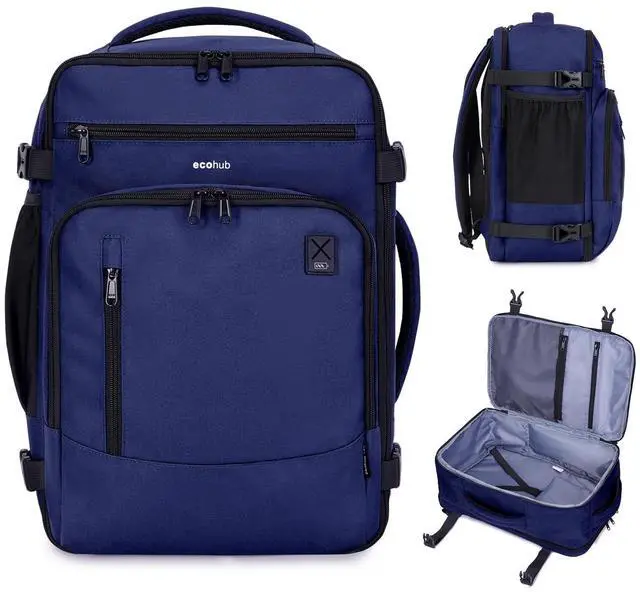 • SAY NO TO BAGGAGE FEES: The ECOHUB 25L Carry On Bag is perfectly sized to meet United Airlines' personal item requirements. Measuring 17" x 10" x 9" and weighing just 1.6 lbs, it fits neatly under the seat. Its also compatible with Spirit, Frontier, EasyJet and many other airlines. (Patent Pending)