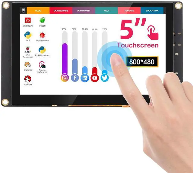 HD Capacitive Touchscreen: Featuring an 800480 resolution LCD panel with a 60Hz refresh rate, this display ensures sharp visuals, smooth performance, and responsive touch. Ideal for coding, gaming, and media playback ^^ Driver-Free, Plug-and-Play: The LCD display comes with an HD cable for display and a USB cable for power. Simply connect HDMI for display and USB for powerno drivers needed. A quick 5-second setup makes it perfect for beginners, coding lessons, and project demos ^^