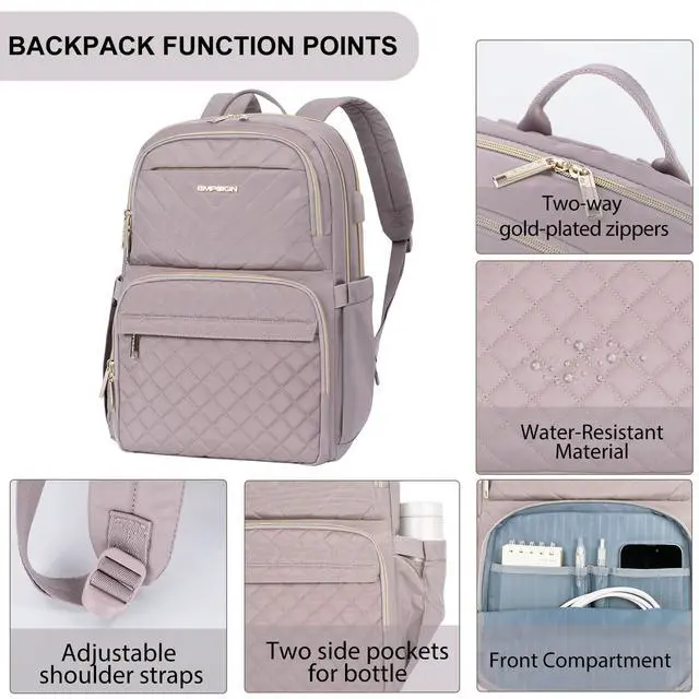 Stylish Women Backpack: Empsign laptop work backpack is made of high-quality quilted fabric, with waterproof and wear-resistant advantages. The exterior of the backpack adopts quilting technology, high-quality metal lock, and USB interface design, conveying a classic and fashionable appearance and feeling. The stable bottom of the backpack can better carry the backpack. ^^ Ideal