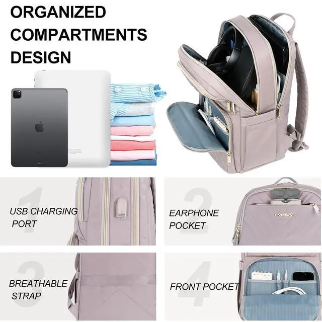 Large Capacity: EMPSIGN laptop backpack Purse has many pockets that can hold different types of items. The backpack features multiple compartments and 15 multifunctional small pockets to keep items organized. The padded pockets of 15.6 -inch laptops and iPad pockets provide thick padded sections. The padding design can protect your laptop from accidental impacts and scratches. The large capacity of the backpack can meet your needs in any usage scenario. ^^ Durable and