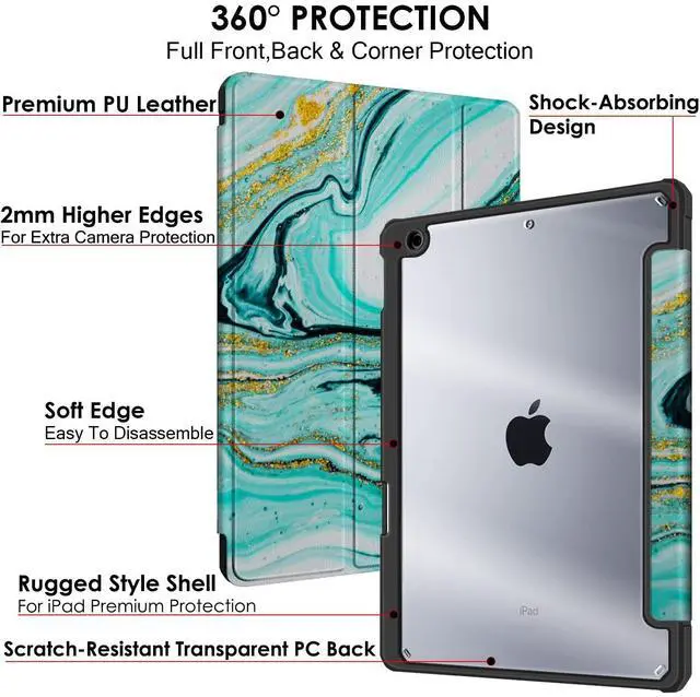 Key FeaturesExclusively designed for all iPad 10.2 9th & 8th & 7th Gen(2021/2020/2019)Smart Auto Sleep/WakePencil Holder Case with Soft Silicone Back for Extra ProtectionMulti-Angle Viewing/Typing StandEasy to InstallCompatibilityAll iPad 10.2 9th & 8th & 7th Gen(2021/2020/2019) ModelsiPad 10.2 2021 (9th Gen) WiFi (A2602 MK2K3HN/A, MK2L3HN/A, MK2N3HN/A, MK2P3HN/A, MK2K3LL/A, MK2L3LL/A, MK2N3LL/A, MK2P3LL/A)WiFi+Cellular (A2604, A2603, A2605 MK663HN/A, MK673HN/A, MK6A3HN/A, MK693HN/A, MK663LL/A, MK673LL/A, MK6A3LL/A, MK693LL/A)iPad 10.2 2020 (8th Gen) WiFi (A2270 MYLC2HN/A, MYL92HN/A, MYLA2HN/A, MYLF2HN/A, MYLD2HN/A, MYLE2HN/A, MYLC2LL/A, MYL92LL/A, MYLA2LL/A, MYLF2LL/A, MYLD2LL/A, MYLE2LL/A)WiFi+Cellular (A2428, A2429, A2430 MYN62HN/A, MYN32HN/A, MYN52HN/A, MYN92HN/A, MYN72HN/A, MYN82HN/A, MYN62LL/A, MYN32LL/A, MYN52LL/A, MYN92LL/A, MYN72LL/A, MYN82LL/A)iPad 10.2 2019 (7th Gen) WiFi (A2197 MW762HN/A, MW742HN/A, MW752HN/A, MW792HN/A, MW772HN/A, MW782HN/A, MW762LL/A, MW742LL/A, MW752LL/A, MW792LL/A, MW772LL/A, MW782LL/A)WiFi+Cellular (A2200, A2198 MW6Y2HN/A, MW6W2HN/A, MW6X2HN/A, MW722HN/A, MW702HN/A, MW712HN/A, MW6Y2LL/A, MW6W2LL/A, MW6X2LL/A, MW722LL/A, MW702LL/A, MW712LL/A)DuraSafe Cases - Durability & Safety of your device in Style.