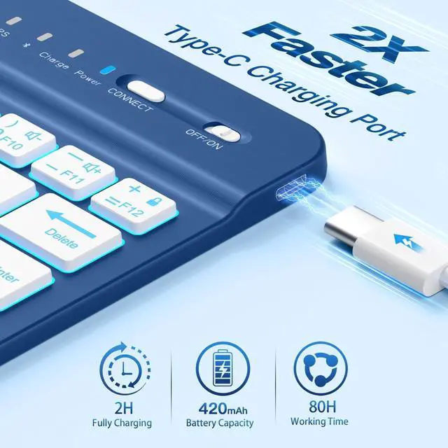 Battery Rechargeable Keyboard: Equipped with a high-capacity rechargeable battery, the keyboard for iPad Mini 7th generation provides 40-80 hours of continuous use on a single charge, making it perfect for both work and play without frequent recharging interruptions ^^ Detachable 7-Color