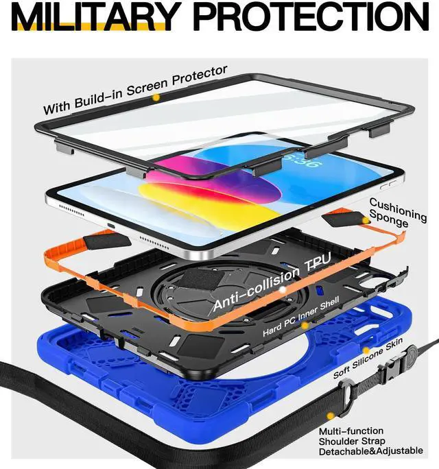 Inch 2019 [MODEL: A2197/A2198/A2199/A2200], WILL NOT FIT ANY OTHER MODEL. Pencil Cap Holder is included, but Apple Pencil and Pencil Cap is not included. ^^ Full Body Protection Three layer structure design with built-in transparent screen protector provides a full around protection against scratch, impacts and shock during daily use. Built-in Apple Pencil Holder and Apple Pencil Cap Holder offer a safe way to store your iPad Pencil while using our case. ^^ 360 Swiveling Stand & Hand Strap Located on the back of iPad 9th/8th generation 10.2 Inch shockproof case 2021/2020, built-in 360 degree rotating kickstand and adjustable handle hand strap provides a more flexible and convenient way to use your tablet during work, study or journey, ideal for students, teachers, engineers, cashiers and waiters, etc. ^^ Adjustable & Detachable Carrying Strap Portable Shoulder Strap allows to carry your iPad in landscape/portrait mode securely in outdoors or hang your iPad in kitchen, bedroom, car seat for convenient usage. ^^ Customer Service Our Professional Service Team will solve your problems to ensure your complete satisfaction within 24 hours. Just SEND EMAIL to contact us if you meet any problem such as replacement, refund, strap, installation guide.