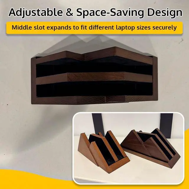 ^^: Features two parallel slots with a tilted design, perfect for devices up to 1 inch thick. Our wood laptop stands for desk and wooden laptop stand for desk doubles as a wood laptop stands for desk or wood laptop holder, making it ideal as a laptop desk holder stand or dual laptop holder. Perfect for MacBook Air 13-inch stand, stand laptops, or lap top holder setups, this wooden standing laptop stand provides stable, organized storage while keeping your workspace tidy and efficient.