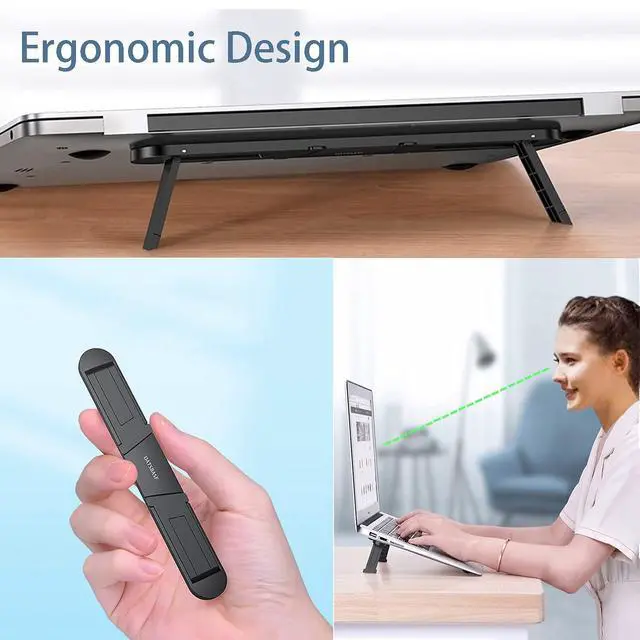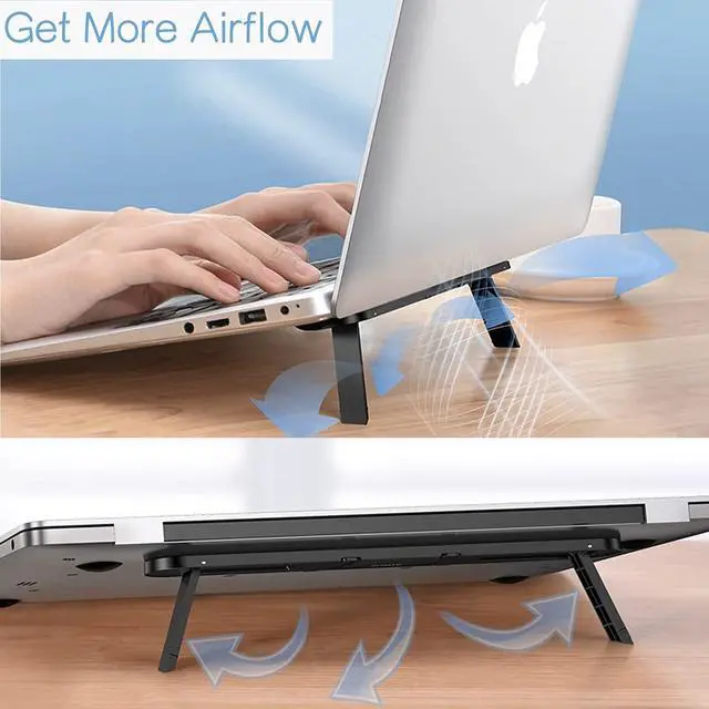 Essential Benefits: a) Elevate your laptop experience with our versatile and ergonomic laptop stand. This laptop stand is compatible with 12 to 17-inch laptops & tablets, making it a perfect choice for students, professionals, and gamers. This invisible laptop stand will complement any occasion, while its lightweight and collapsible design make it a great travel companion. b) Our adhesive laptop stand is easy to install and use, and it can be adjusted to the perfect height and angle for your comfort. The ventilated adjustable design allows for optimal laptop ventilation, preventing overheating and prolonging the lifespan of your device. This laptop cooling stand is perfect for long hours of work or gaming, providing you with a comfortable and ergonomic viewing experience. c) In summary, our small laptop cooling stand is a must-have for anyone who wants to improve their laptop experience. It is portable, adjustable, ergonomic, and ventilated, making it a great choice for students, professionals, and gamers.