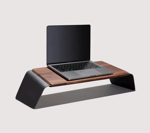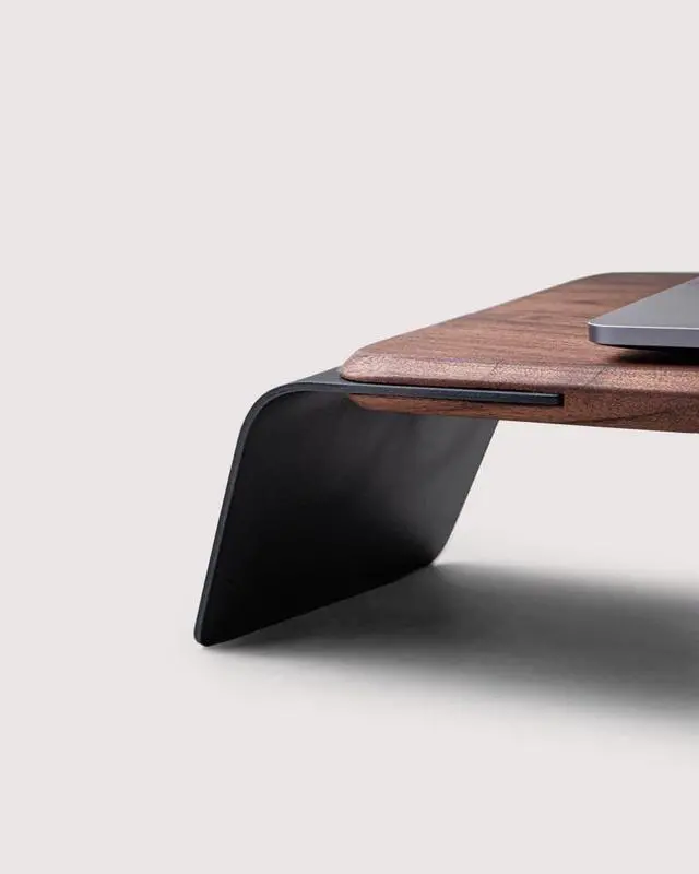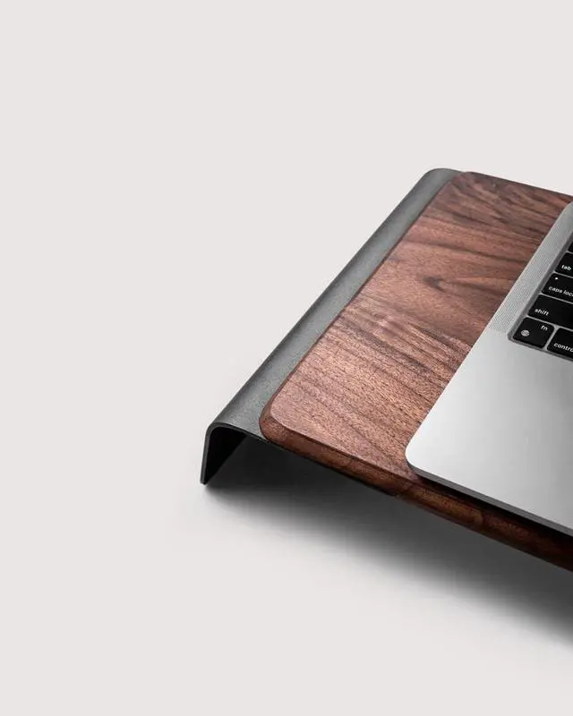 Elevate your workspace with the NOOE Anywhere Laptop Stand Desk Top Table Holder. This sleek and ergonomic design features a 10-degree angled surface, promoting better posture and reducing strain on your back and neck. Crafted from premium American walnut wood and space-grade aluminum with an anthracite finish, it offers a generous 46.5 cm x 22.5 cm working area, accommodating laptops up to 13-16 inches. The curvy edges provide a comfortable resting position for your wrists, while the Scandinavian-inspired emotive design adds a touch of sophistication to any workspace. With a front height of 10.5 cm and a back height of 15 cm, this laptop stand ensures optimal viewing and typing angles.
