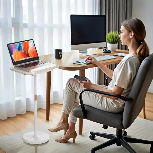 Dual Use Laptop Stand: Functions as both a desktop stand and a floor stand. Anti-slip pads on the tray and base ensure stability on all surfaces. Ideal for office, study, or entertainment, providing a stable and comfortable experience ^^