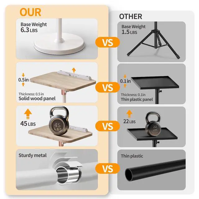 Durable & Stable Design: Featuring a sturdy support pole, a 6.3 lbs metal base, and full-coverage anti-slip pads on the bottom, this small laptop table holds up to 45 lbs. Provides stability on all surfaces and is easy to assemble in under 5 minutes for added convenience ^^ Wooden Panel & Book