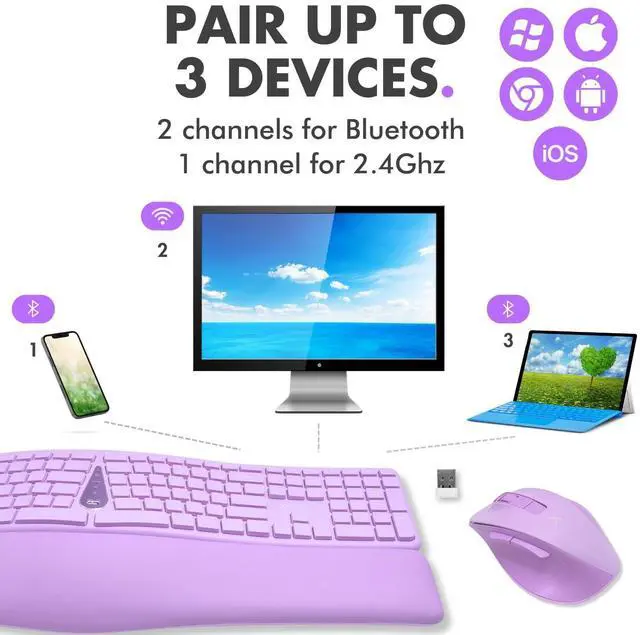 ^^ Multi-Device Connectivity: Pair up to 3 devices with the wireless mouse keyboard combo using Bluetooth 5.0 and 2.4GH z for seamless switching between your computer, tablet, and phone. (Mac, PC, iOS, and Android).
