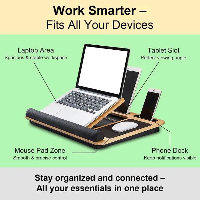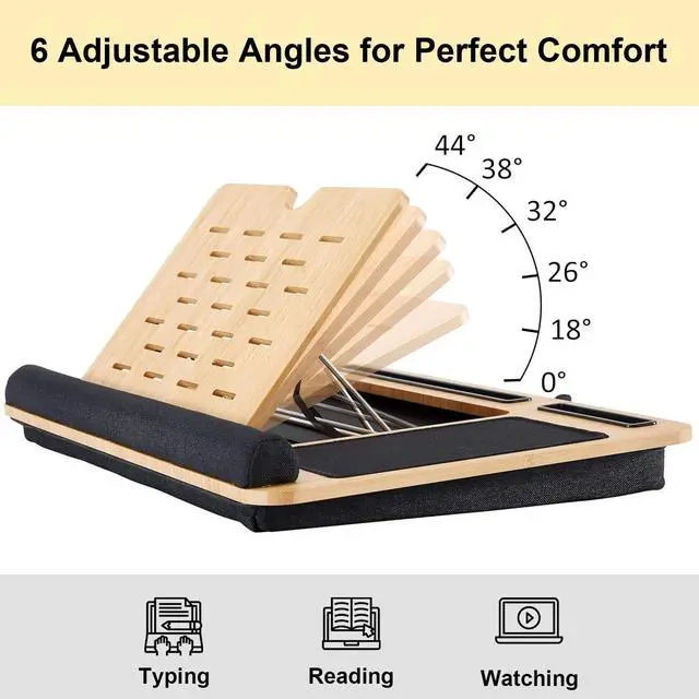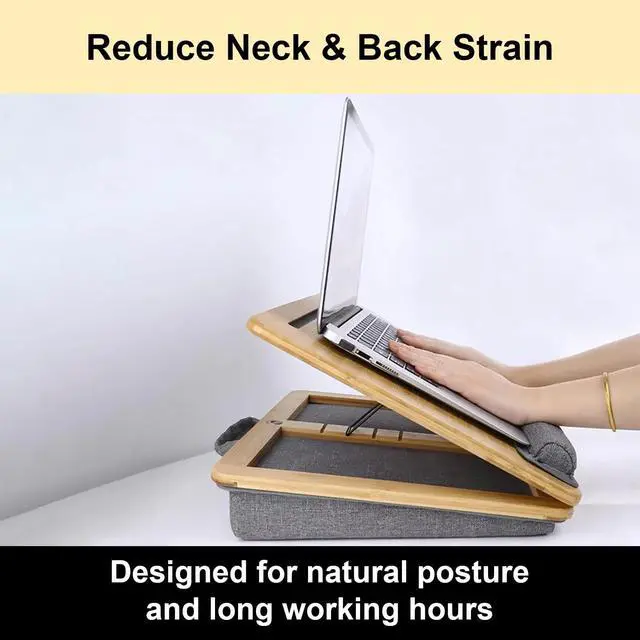 Adjustable & Ergonomic Design - Easily raise your screen to eye level with this foldable wooden laptop stand. Promotes better posture, reduces neck strain, and creates a comfortable work setup anywhere. ^^ Premium Wood Construction - Made from durable natural wood for stability and style. A sturdy laptop riser that blends perfectly with any home or office decor. ^^ Multi-Functional & Portable - Use as a lapdesk with cushion, bed tray, or foldable laptop riser. Ideal for working, studying, or streaming comfortably from your sofa, bed, or desk.