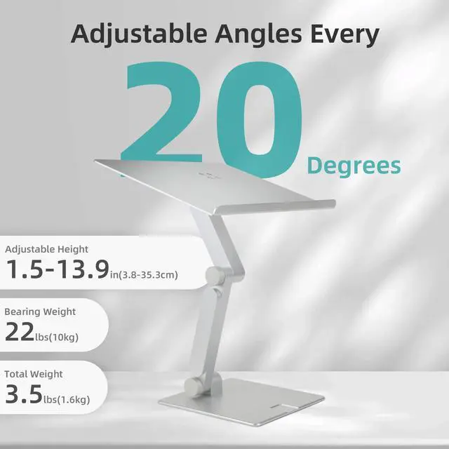 SECURE GEAR LOCKING MECHANISM: Adjust once and stay there. Gear-based locking arms ensure your laptop holds firm at any angle, with no drift or shakeeven on uneven surfaces. Can be adjusted every 20 degrees. ^^