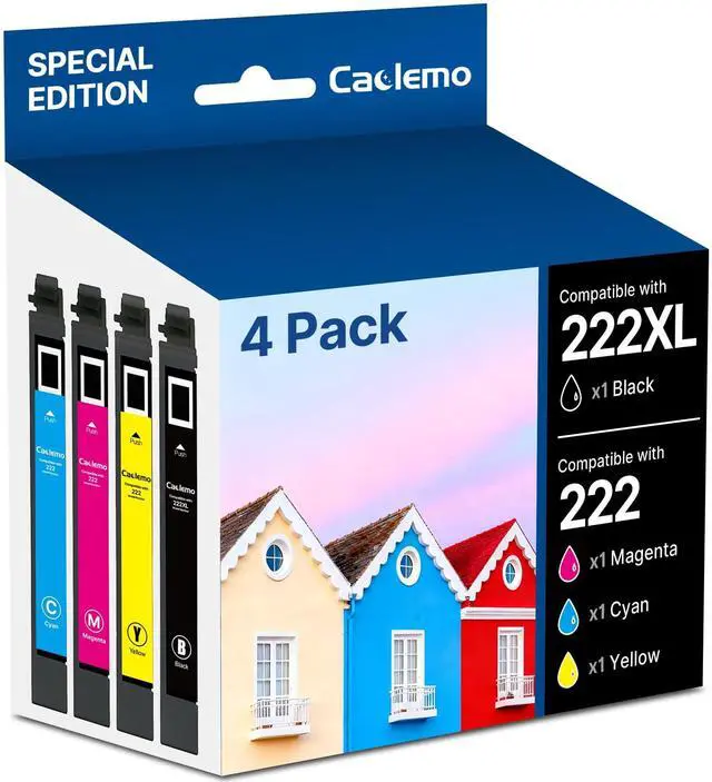 What's in the Box: Remanufactured for epson 222xl ink cartridges combo pack include 1 x Black 222 ink cartridges, 1 x Cyan 222 ink cartridges, 1 x Magenta 222 ink cartridges, 1 x Yellow 222 ink cartridges ^^ 5.