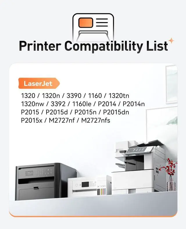 ^^ Compatible Printer: Compatible with HP LaserJet 1320 1320n 3390 1160 1320tn 1320nw 3392 1160le P2014 P2014n P2015 P2015d P2015n P2015dn P2015x M2727nf M2727nfs printer.