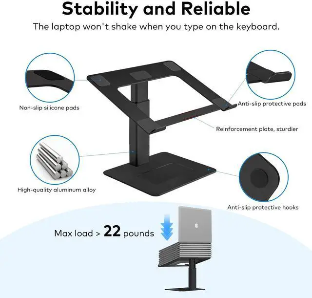 Wide Compatibility: This laptop stand is compatible with all laptops from 10''-17'', such as Apple Macbook, Macbook, Macbook Air/Pro, Ipad, Ipad Air/Pro, Lenovo ThinkPad, Dell, HP, Samsung, Chromebook, and other notebooks.
