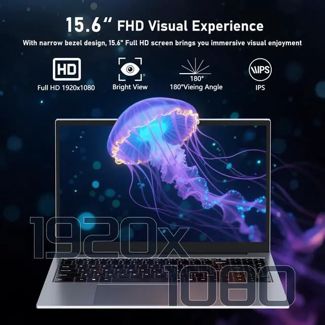Exceptional Efficiency: This 15.6 -inch laptop features an advanced Alder Lake N100 CPU clocked at up to 3.4 GHz with a 6 MB cache for outstanding processing power. Whether you're working with complex spreadsheets, streaming HD video, or running multiple applications simultaneously, this laptop delivers seamless performance ^^ 16GB