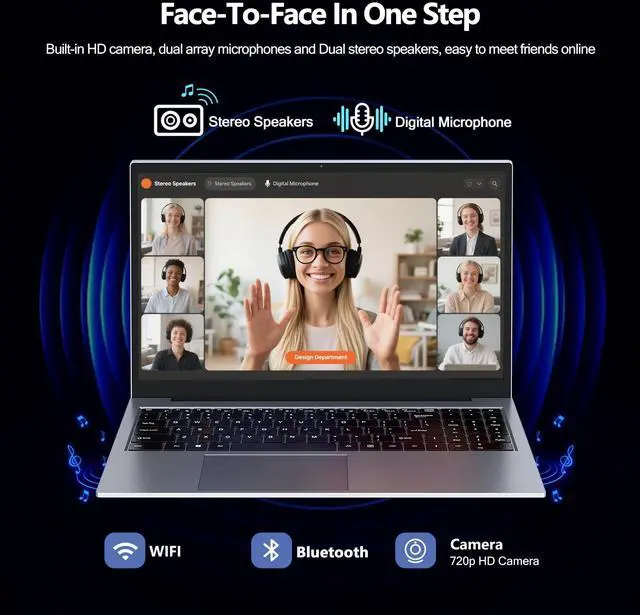 Clarity: Featuring a 1920*1080 FHD IPS screen and ultra-narrow bezel, this laptop delivers a widescreen viewing experience that enhances productivity and entertainment. The integrated HD webcam allows for clear video conferencing and easy photo taking. Built-in dual stereo speakers and dual-array microphones deliver crystal-clear sound quality for voice calls and multimedia playback, ensuring that every communication is smooth and every detail is audible ^^